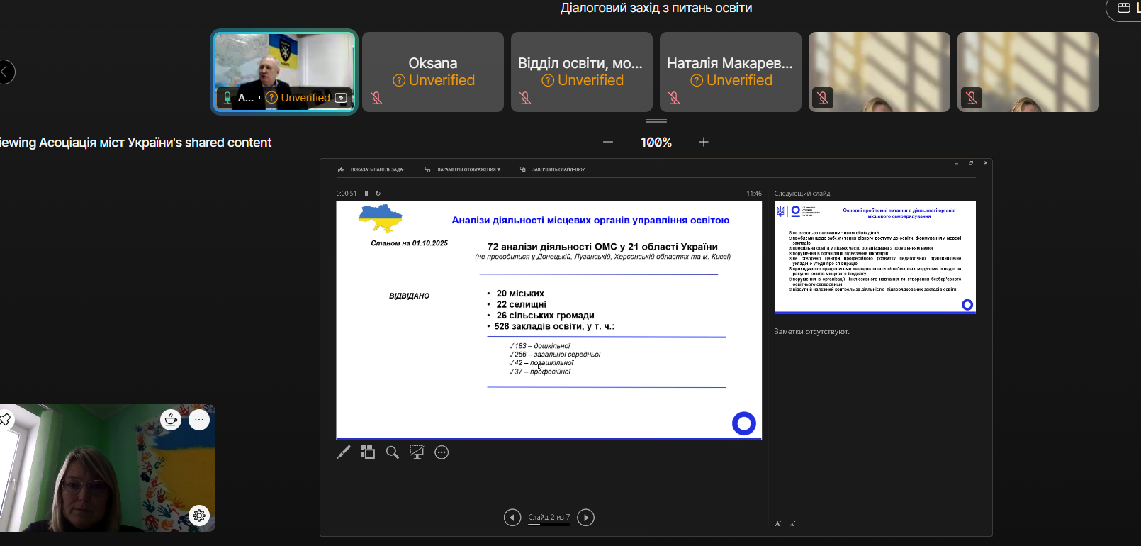 Діалоговий захід Асоціації міст України спільно з Державною службою якості освіти України «Шляхи підвищення ефективності органів місцевого самоврядування у реалізації освітньої політики»