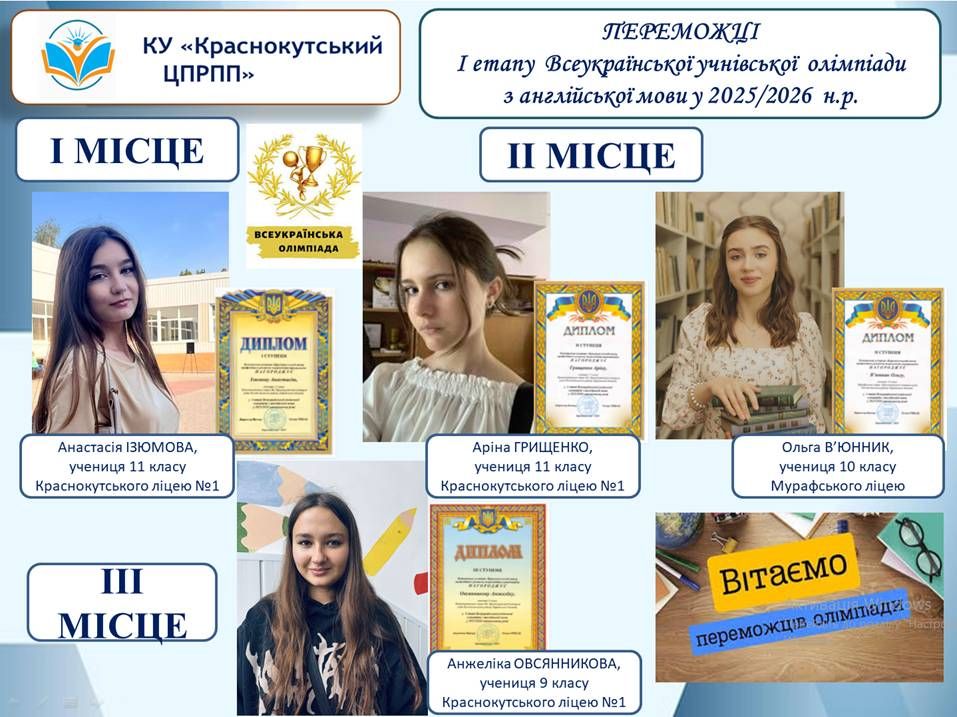 За результатами І етапу Всеукраїнської учнівської олімпіади з англійської мови у 2025/2026 н.р. переможцями стали: