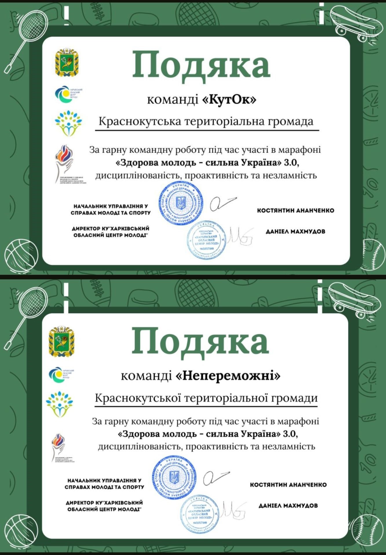 Наші команди активних спортсменів “Непереможні” (село Качалівка) та «Куток» (селище Краснокутськ та ...