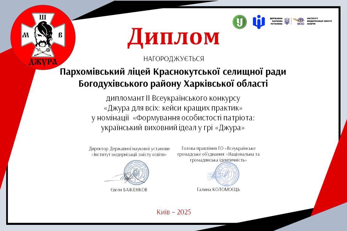 Пархомівський ліцей – дипломант ІІ Всеукраїнського конкурсу «Джура для всіх: кейси кращих практик»