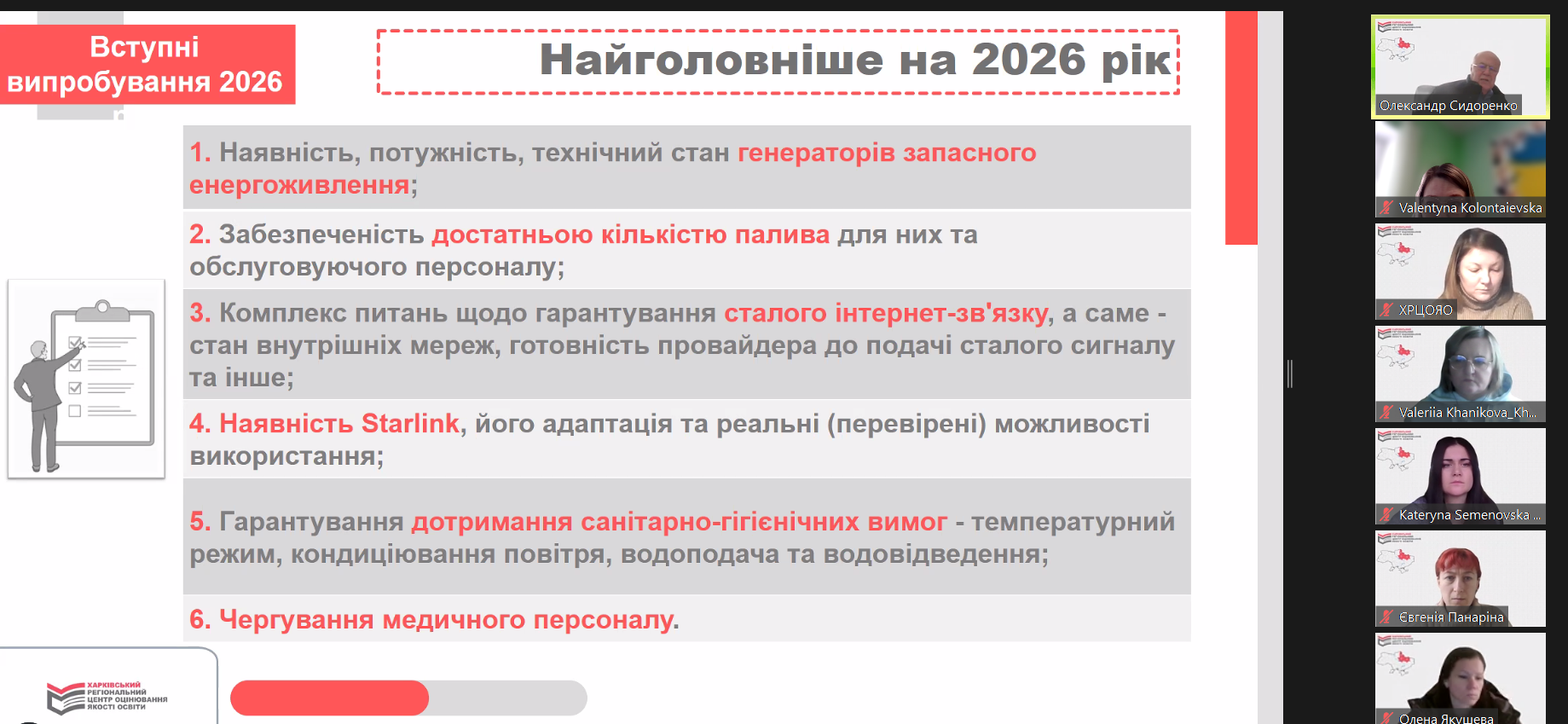 13 лютого Харківський регіональний центр оцінювання якості освіти спільно з Харківською обласною військовою адміністрацією обговорили питання забезпечення роботи пунктів тестування цього року з головами громад області, керівниками ЗВО м. Харкова та керівництвом Департаменту освіти Харківської міської ради.